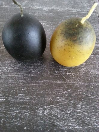 Восковое яйцо ручной работы.Из натурального воска с черной солью и травами. Для взрослого человека- черное, для деток- желтое. Не подходит для чистки помещений! Можно использовать и для откатки,и как обычную свечу