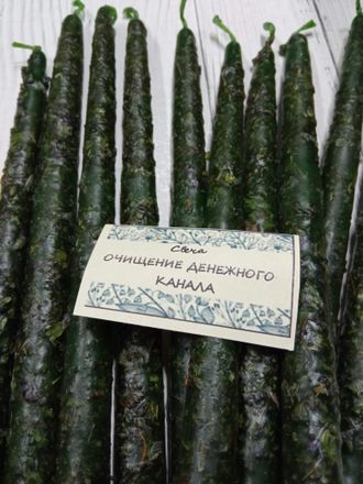 Внутри каждой свечи нанесен рунический став на очищение денежного канала, на избавление от безденежья.