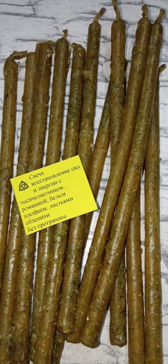 Свеча восстановление сил и энергии с тысячелистником, ромашкой, белым шалфеем,листьями облепихи. Без программы