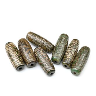Бусины Дзи "Пятнадцать глаз" из агата бочонок 10*30мм, цв.зеленый, 300 р Бусина Дзи 15 глаз приносит удачу её владельцу и наделяет его мудростью. Она помогает воплотить в жизнь все желания и уменьшает человеческие страдания. 15 глазую Дзи называют талисманом небесной удачи, так как она поддерживает её владельца во всех начинаниях, помогает устранить препятствия на пути к цели и приносит хороший достаток.