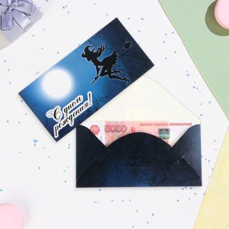 Конверт для денег "С Днём Рождения!" глиттер, ведьма, 17х8,5 см