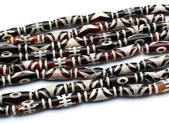 Бусина Дзи "Аристократ" из агата бочонок 10*30мм, цв.красно-белый
