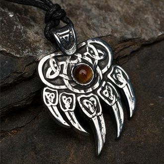 Амулет "Печать Велеса" с камнем тигровый глаз, 30х43мм, металлический