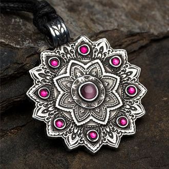 Амулет "Мандала Любви" с улекситом и стразами, 35х42мм, металлический